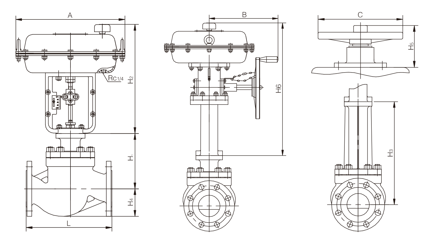 氣動套筒調節閥是由多彈簧氣動薄膜執行機構和低流阻精小型調節閥閥體組成,多彈簧執行機構高度低、重量輕、裝備簡便。閥體流道呈S流線型,具有結構緊湊、重量輕、動作靈敏、壓降損失小、閥容量大、流量特性精確、維護方便等優點,可用于苛刻的工作條件。其配用電-氣閥門定位或氣動閥門定位器,可實現對工藝管路流體介質的自動調節控制。廣泛應用于精確控氣體、液體、蒸汽等介質的工藝參數如壓力、流量、溫度、液位等參數保持在給定值。